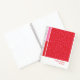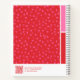 This notebook design features a vivid red background covered in a playful pink floral scatter for a bold, energetic look. The full-pattern layout creates a strong visual statement, while the crisp white border and accent panels add structure and balance. With customizable text fields, this design blends expressive color with a polished, modern finish.