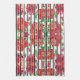 Vibrant red flowers and green leaves on curtains tea towel