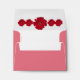 This A2 sized envelope is adorned with of a bold red Gerber daisy and digital art design over a red background colour. Two red Gerber daisies grace the three loop digital art on this envelope front. The theme is carried onto the back outside envelope flap and the flowers form a line across the inside flap. Click "Customise it!" to add text such as a return address. All design elements are customisable so you can remove or duplicate any. In customise you can also click "2 Choose your paper type and colour".
