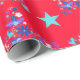 Vibrant Red Gradient Floral Star Pattern Wrapping Paper