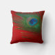 Vibrant Red Peacock Feather Cushion