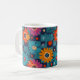 Vibrant Retro Floral Pattern with Teal Squares Coffee Mug