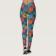 Vibrant Retro Floral Pattern with Teal Squares Leggings