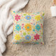 Brighten your home with the high-energy, cheerful spirit of this retro-inspired floral throw pillow. The design features a playful, "Dopamine Decor" aesthetic, combining bold, multi-coloured daisies in "Electric Orange," sunny yellow, and "Transformative Teal" with whimsical abstract shapes. Scattered polka dots, stars, and wavy confetti-like lines in shades of hot pink and lime green create a sense of organised joy against a soft cream background.