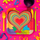 A colourful and vibrant retro hearts design. This design looks really effective on these Paper Plates