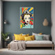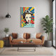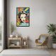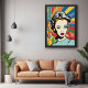 This artwork draws inspiration from the iconic pop art movement, chraacterised by its use of bright colours, commercial imagery, and a celebration of popular culture. The woman's confident expression and the vibrant explosion of colours around her make this piece a true statement of individuality and style. Whether you're a fan of retro designs or looking for something that pops in your interior, this print is sure to stand out.