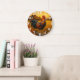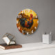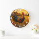 Vibrant rooster in golden pasture large clock