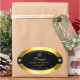 The design features a noble shimmering orange frame with fine decor lines, on a plain black background.