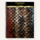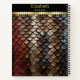 A striking display of snakeskin reveals rich textures and a blend of colours. The scales shimmer with shades of red, gold, and brown, showcasing nature's artistry in detail. MONOGRAM