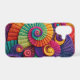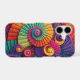 A collection of colorful spirals forms an intricate, textured design. The swirling patterns display a rich variety of hues and shapes.
