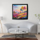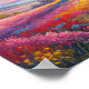 An enchanting landscape painting bursting with the joyful colours of spring. Rolling hills are adorned with a tapestry of blooming wildflowers in shades of fuchsia, lavender, gold, and cerulean. A gentle path winds through the vibrant flora, leading the eye towards a line of graceful trees with foliage painted in brilliant hues of yellow, blue, and pink. The sky above is a spectacle of soft pastels, with wisps of clouds bathed in the warm glow of dawn or dusk, creating a serene yet lively atmosphere. This artwork captures the essence of a dreamlike springtime, inviting viewers to immerse themselves in its beauty and tranquillity.