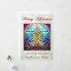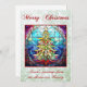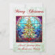 Vibrant Stained Glass Christmas Tree Green Glitter Holiday Card