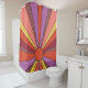 The shower curtain shows a vibrant sunset design. For colour customisation please enquire: info@KBMD3signs.com