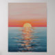 A captivating painting depicting a vibrant sunset reflecting off calm ocean waters. The warm hues of orange, pink, and yellow blend seamlessly with the soft blue tones of the sea, creating a serene and mesmerising scene. Perfect for art lovers seeking to bring warmth and tranquillity into their space.