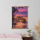 This captivating wall art showcases a vivid sunset with rich purple, pink, and golden tones glowing across a peaceful body of water. The graceful silhouette of a tree extending over the lake adds depth and a sense of calm, creating a striking yet soothing composition. Ideal for contemporary, bohemian, or nature-inspired interiors, this artwork brings warmth, emotion, and a serene natural atmosphere to living rooms, bedrooms, or creative spaces.