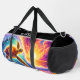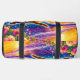 This colourful design duffel bag showcases a vibrant and artistic colourful pattern of a swimming sea turtle amidst a breathtaking sunset and ocean waves. It's a stylish and functional travel accessory, perfect for anyone seeking an expressive and unique design in their carrying bag.