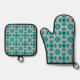 Vibrant Teal and Salmon Geometric Kaleidoscope Pat Oven Mitt & Pot Holder Set