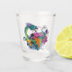 Vibrant Teal Oriental Koi Dragon Lotus Flower Shot Glass
