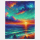 This vibrant artwork captures the breathtaking beauty of a sunset over the ocean, a captivating addition to the “H2OArt: Beautiful Blankets & Cosy Covers” collection by AlexSandra. The sky is a stunning blend of warm and cool tones, featuring streaks of red, orange, yellow, green, blue, and purple in the clouds. The ocean reflects these vivid colours with visible brushstrokes, adding texture and depth to the scene. With the teal-coloured tides rolling in, this piece beautifully combines the serenity of a sunset with dynamic and colourful artistry, making it a captivating addition to any space.