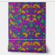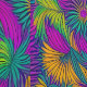 A vibrant, colourful pattern of tropical flowers with bold purple, green, yellow, and orange hues. The flowing petals and leaves create a lively, energetic design perfect for a tropical or summer vibe.