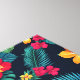 Make a statement with this eye-catching all-over-print featuring vibrant tropical flowers and lush green leaves on a dramatic black background. This bold and beautiful design is sure to turn heads wherever you go. Perfect for adding a touch of the tropics to your wardrobe or home decor