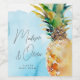 This elegant destination wedding wine bottle label features a gorgeous watercolor illustration of a pineapple on a beautiful blue watercolor background. The typography is classic yet modern. This is the perfect design for a tropical beach themed or destination wedding. See the collection for more coordinating items.