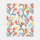 Vibrant Tulip Pattern Floral Design on White Fleece Blanket