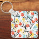 Vibrant Tulip Pattern Floral Design on White Key Ring