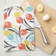Vibrant Tulip Pattern Floral Design on White Tea Towel