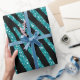 An all over elegant stylish elegant zebra turquoise sparkles stripes photography on a black print decor and available on this fine custom gift.