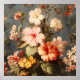 A lush bouquet of colourful flowers is displayed against a muted background. The detailed petals and leaves create a sense of depth and richness.