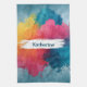 Vibrant Watercolor Paint Splash with Custom Name Tea Towel