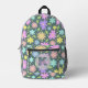 Vibrant Whimsical Pastel Garden Blooms on Green Printed Backpack