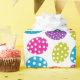 A lively scatter of pastel eggs with playful polka dots brightens crisp white paper, tied with springtime charm. Inspired by Easter egg hunts, this design brings a fresh, festive look to holiday gifts and seasonal decor.