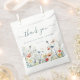 This design features a border of vibrant wildflowers in shades of red, yellow, green, teal, and blue. Perfect for casual summer baby showers.