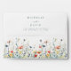 This design features a border of vibrant wildflowers in shades of red, yellow, green, teal, and blue. Perfect for casual summer weddings.