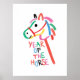 A bright and cheerful "Year of the Horse" art piece, perfect for bringing a splash of color to any room. This hand-drawn hobby horse features a spectrum of colors on a clean white background, making it an ideal choice for minimalist or Scandinavian-style kids' rooms and nurseries.
