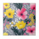 Vibrant Yellow And Pink Flowers On Grey Tile