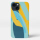 Vibrant yellows and blues bold geometric abstract with ring and stripes slim protective iPhone case for art lovers and gift buyers, Mid century modern inspired minimalist abstract design strong graphic lines and soft brush texture ideal as a statement phone accessory, Contemporary abstract illustration featuring contrasting blue rings and golden stripes versatile gift for her or him and daily protection.