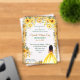 Celebrate your special day with elegance and beauty with this yellow-themed quinceañera invitation, created to reflect your unique style and heritage. Featuring a stunning quinceañera in a yellow dress with afro-textured hair, this invitation celebrates your beauty, strength, and cultural pride. The vibrant yellow flowers surrounding the quinceañera symbolise joy, new beginnings, and positivity, making it the perfect choice for a memorable quinceañera celebration.