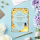 Esta invitación de quinceañera refleja tu belleza y orgullo cultural. Con flores amarillas, un vestido amarillo, y una quinceañera con cabello afro, esta invitación celebra tu historia y el viaje hacia la madurez. Invitación de quinceañera en amarillo, ideal para una fiesta llena de luz, alegría y orgullo. Quince años.