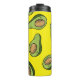 Take a fresh and fun vibe with you wherever you go with this adorable avocado print travel mug. Featuring a vibrant and whimsical pattern of sliced avocados on a cheerful sunny yellow background, this insulated thermal tumbler is the perfect blend of style and practicality. Whether you're commuting to work, heading to the gym, or enjoying an outdoor stroll, it keeps your favorite coffee or tea at the perfect temperature. Crafted for durability, this spill-resistant travel mug is a fantastic gift for avocado toast lovers, vegan friends, or anyone who appreciates a healthy and happy aesthetic. Stay hydrated and inspired with this unique, fruit-themed accessory that brings a pop of sunshine to your daily routine!