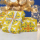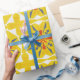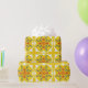 vibrant yellow geometric pattern with red and blue wrapping paper