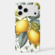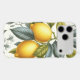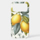 This elegant botanical design features detailed illustrations of vibrant yellow lemons, combined with branches and leaves in shades of bright blue and teal green. The art is rendered in a fresh watercolor style, with hints of minimalist line art, creating a modern and sophisticated look.