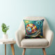 A beautiful vibrant and colorful snail in blue, brown, green and swirls of colors in an impasto style throw pillow.