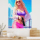 She’s sugar, sass, and semi-automatic. With her candy-pink pants, lavender crop top, and that signature don’t-mess-with-me look, Vice Baby blends beach glam with lethal charm. Whether she’s undercover or just stealing hearts on Ocean Drive, she knows exactly how to make an entrance – and an exit.