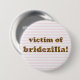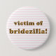NewParkLane - Fun Bridesmaid's Button, with funny quote: 'Victim of Bridezilla', in a modern typography with a tiger print pattern, against a blush pink striped background.