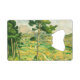 Victoire and the Viaduct of the Arc River Valley. Paul Cezanne. Landscape in green tones. in the foreground there is a tall pine tree. In the middle ground, a railway bridge runs across a wide field. Mountains in the background. Reproduction of famous works of art images in the public domain.