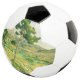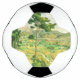 Victoire and the Viaduct of the Arc River Valley. Paul Cezanne. Landscape in green tones. in the foreground there is a tall pine tree. In the middle ground, a railway bridge runs across a wide field. Mountains in the background. Reproduction of famous works of art images in the public domain.