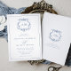 Victorian Baroque Floral Crest Blue Wedding Invitation features a timeless vintage style botanical monogram crest formed by vines of foliage and floral accents, and is trimmed with a delicate frame.
